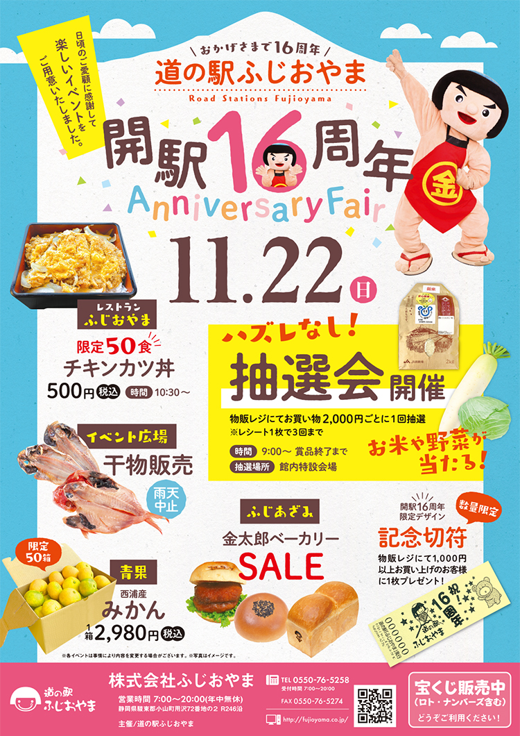 2020年11月22日(日)は道の駅ふじおやま開駅16周年祭!