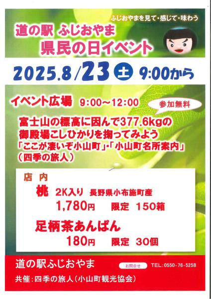 県民の日を記念して、道の駅ふじおやま 県民の日イベントを開催いたします。