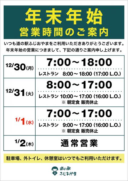 いつも道の駅ふじおやまをご利用いただきありがとうございます。