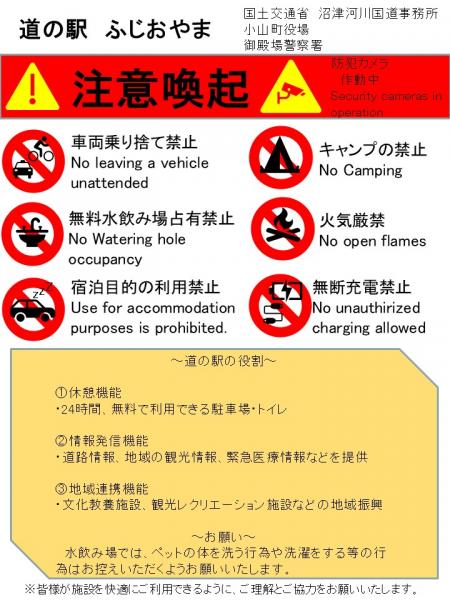 道の駅ふじおやまからのお願い