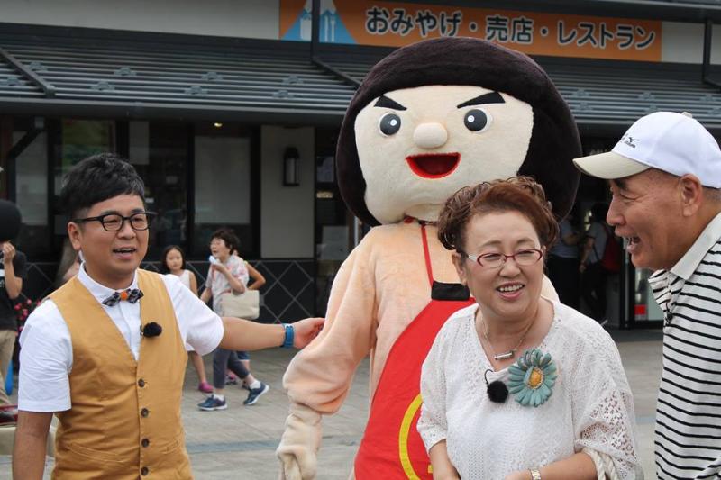 小山町内の様々な場所で収録され、道の駅ふじおやまでは、宮川大介・花子さん、パンクブーブーさん達がとても楽しいトークを繰り広げました。