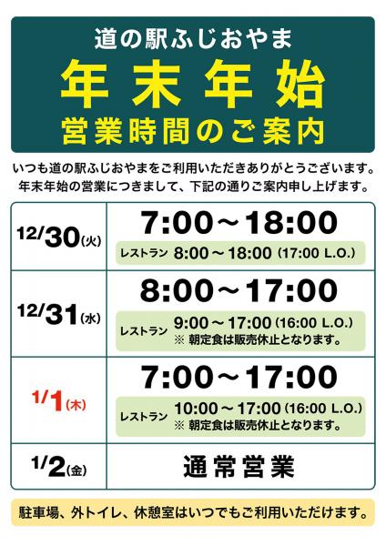 いつも道の駅ふじおやまをご利用いただきありがとうございます。